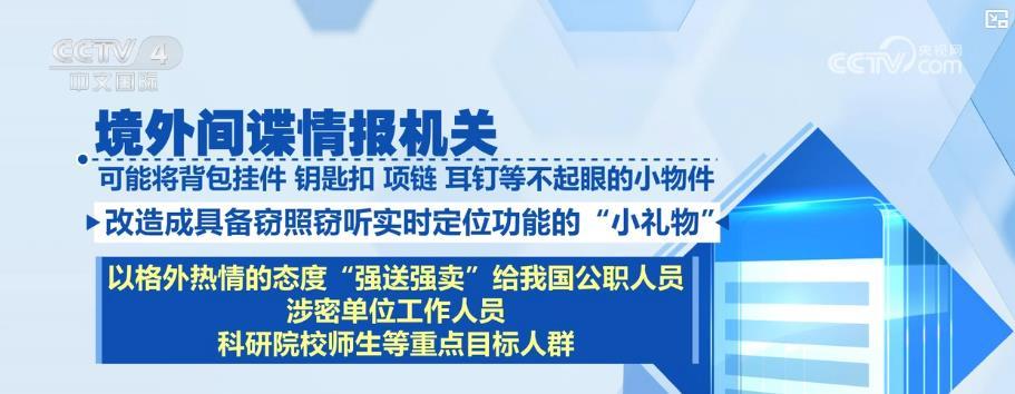 对于一些改装的礼品,也要格外注意。境外间谍情报机关可能将背包挂件、钥匙扣、项链、耳钉等不起眼的小物件改造成具备窃照窃听实时定位功能的“小礼物”,以格外热情的态度“强送强卖”给我国公职人员、涉密单位工作人员、科研院校师生等重点目标人群,妄图非法获取我国国家秘密和内部敏感信息。国家安全机关提示,境外出行,对行为可疑、异常热情的境外人员要保持高度警惕,若对方提出赠送纪念礼品等要求要多加防范,避免落入境外间谍情报机关精心布置的圈套。