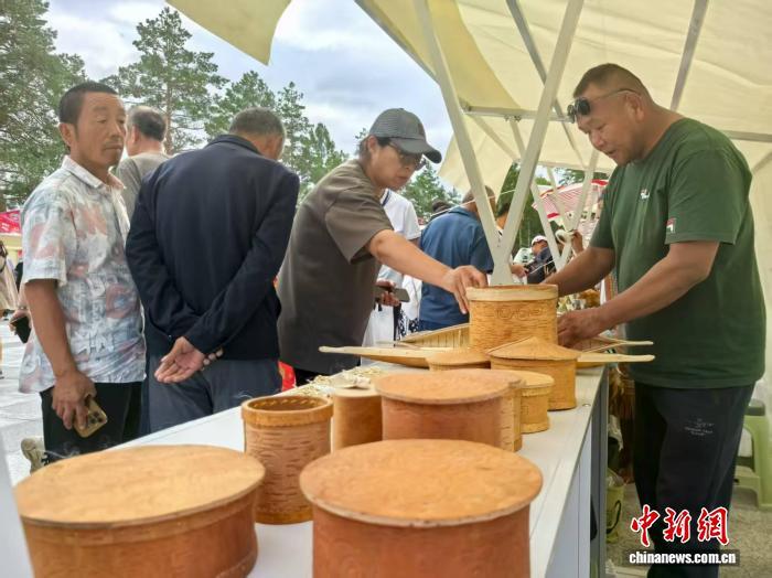 商户在非遗大集销售桦树皮手工艺品。 姜辉 摄