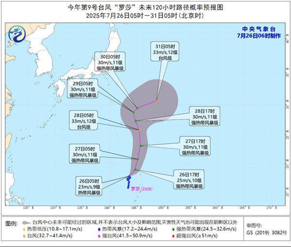 今年第9号台风“罗莎”(热带风暴级)的中心今天早晨5点钟位于关岛塞班西北方向大约365公里的西北太平洋洋面上,就是北纬17.8度、东经143.6度, 中心附近最大风力有9级(23米/秒),中心最低气压为990百帕,七级风圈半径120-250公里。
