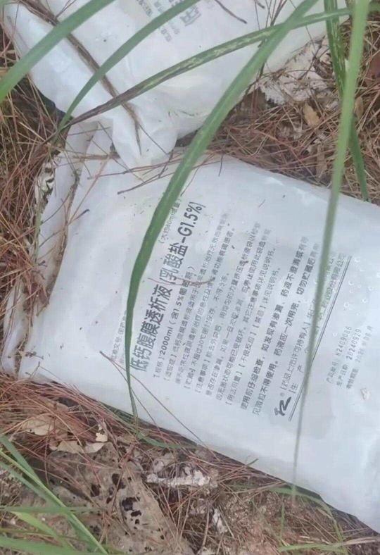 7月29日,江西一网友在社交平台发视频称,其在当地一处小树林看见许多被丢弃的药品和针头。视频画面显示,林子里有许多白色袋子装的药品,其中部分袋子上标注着“低钙腹膜透析液(乳酸盐-G1.5%)”,生产企业为华仁药业股份有限公司,从包装上的信息来看,部分药品尚未过期。