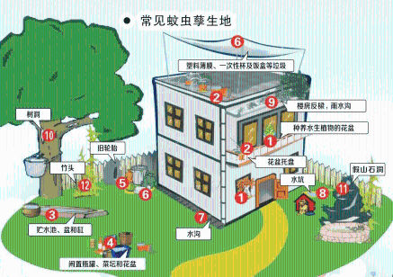 1. 重点排查房屋前后、花园、阳台、天台、水池、树洞、绿化带等地,及时清理废弃容器、水养植物的容器、轮胎、杂物、塑料垃圾、竹筒等积水。
