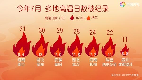7月多地历史同期最热 局地高温全勤