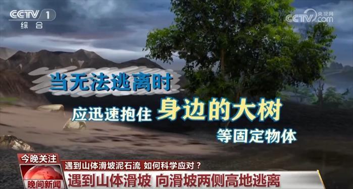 当遭遇山体滑坡或泥石流时,首先要保持冷静,迅速向滑坡泥石流方向的两侧高地逃离,不能沿滑坡移动或流动方向逃生;当无法逃离时,应迅速抱住身边的大树等固定物体。滑坡停止后,应继续待在安全区域,不要返回灾害区避免二次遇险。