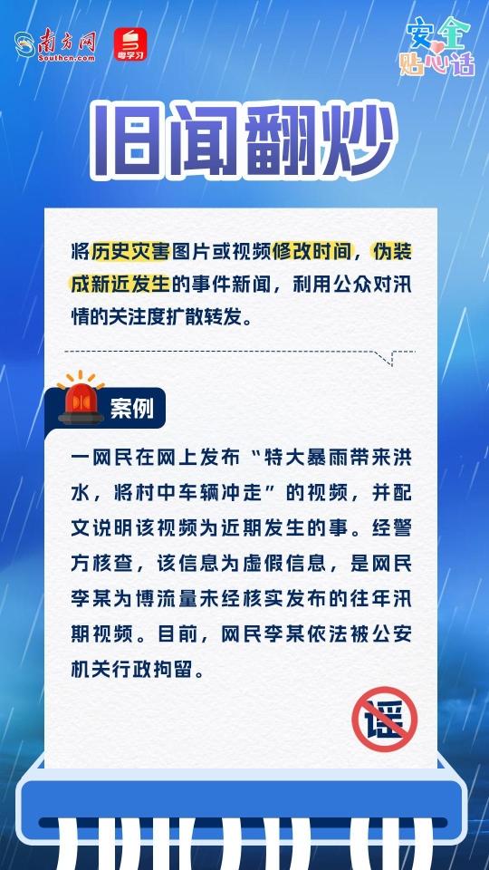 当前正值汛期,我国多地遭遇强降雨侵袭。然而,当公众目光聚焦防汛一线时,却有一些网民为博眼球,通过移花接木、翻炒旧闻、夸大灾情等手段制造谣言,利用公众对汛情的关注扩散转发,造成恶劣影响。