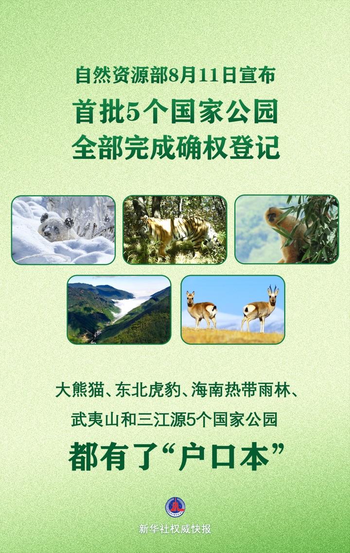 大熊猫、东北虎豹、海南热带雨林、武夷山和三江源5个国家公园都有了“户口本”。