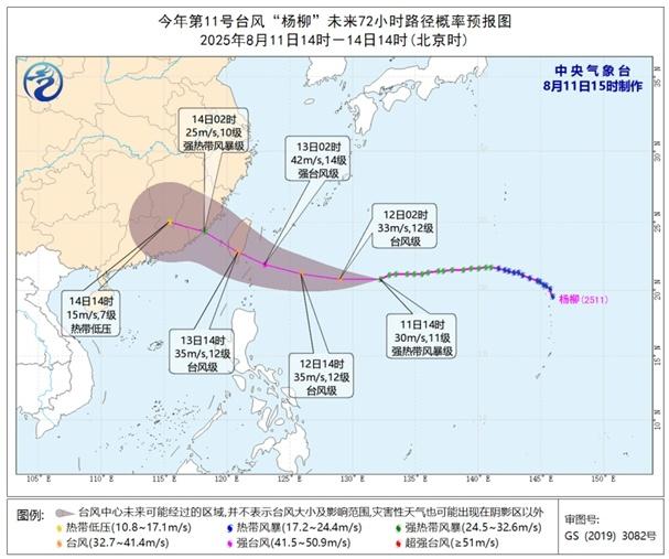 今年第11号台风“杨柳”正一路西行,直奔我国东南沿海,并可能先后登陆台湾和闽粤一带沿海。明天(8月12日)夜间起,台风雨核心影响时段开启,台湾、福建、广东等8省区市会陆续迎来大到暴雨,公众需做好台风防御准备。