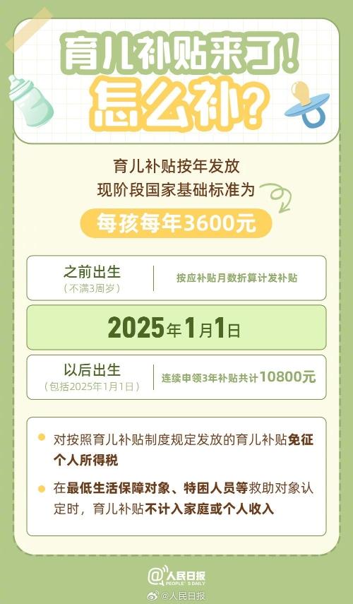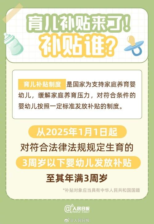 育儿补贴补贴谁?怎么补?2025年1月1日之前出生、不满3周岁婴幼儿补贴怎么发?戳图读懂↓↓