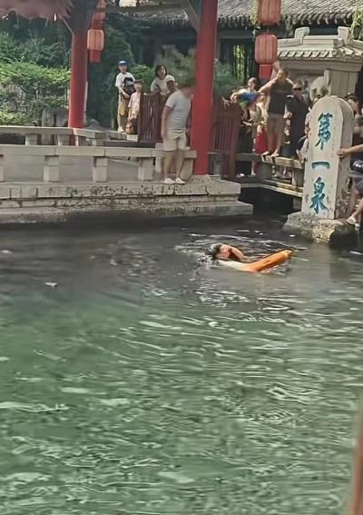 近日多个趵突泉有人落水视频发出,有网友表示8月已经有人落水,景区回应,是同一起。