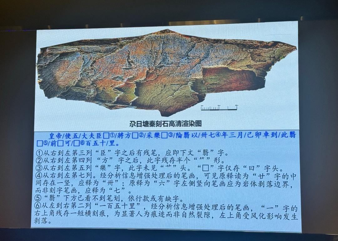 2025年6月8日,《光明日报》刊发了中国社会科学院考古研究所仝涛研究员《实证古代“昆仑”地理位置—青海黄河源发现秦始皇遣使“采药昆仑”石刻》一文,引发广泛关注与讨论。国家文物局迅速安排中国文化遗产研究院、青海省文物考古研究院组建工作专班,调集石质文物保护、秦汉考古、古文字学和书法篆刻等领域专业人员集中科研攻关,两次赴现场调查,获取了石刻本体与赋存环境等科学数据,组织多学科专家两次召开论证会,多角度论证形成专家意见。经审慎研究,认定为秦代石刻,定名为“尕日塘秦刻石”。