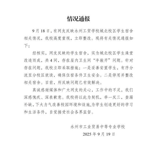 永州市工业贸易中等专业学校9月19日发布情况通报: