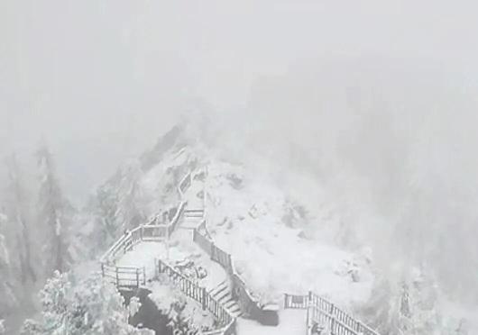 工作人员还介绍,以往国庆假期还没开始降温,一般不会下雪,今年的情况比较特殊。到1日中午,游客情况和往常差不多,开车过来需要小心行驶。