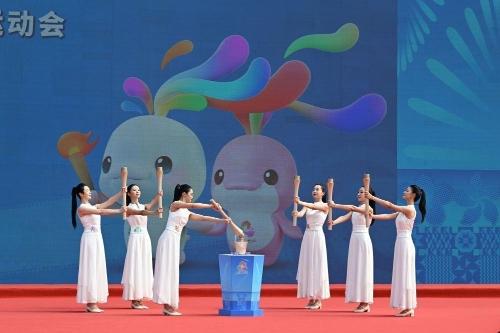 10月9日,采火少女点燃采火棒。当日,中华人民共和国第十五届运动会、全国第十二届残疾人运动会暨第九届特殊奥林匹克运动会火种采集仪式在广东省广州市举行。新华社记者 邓华 摄