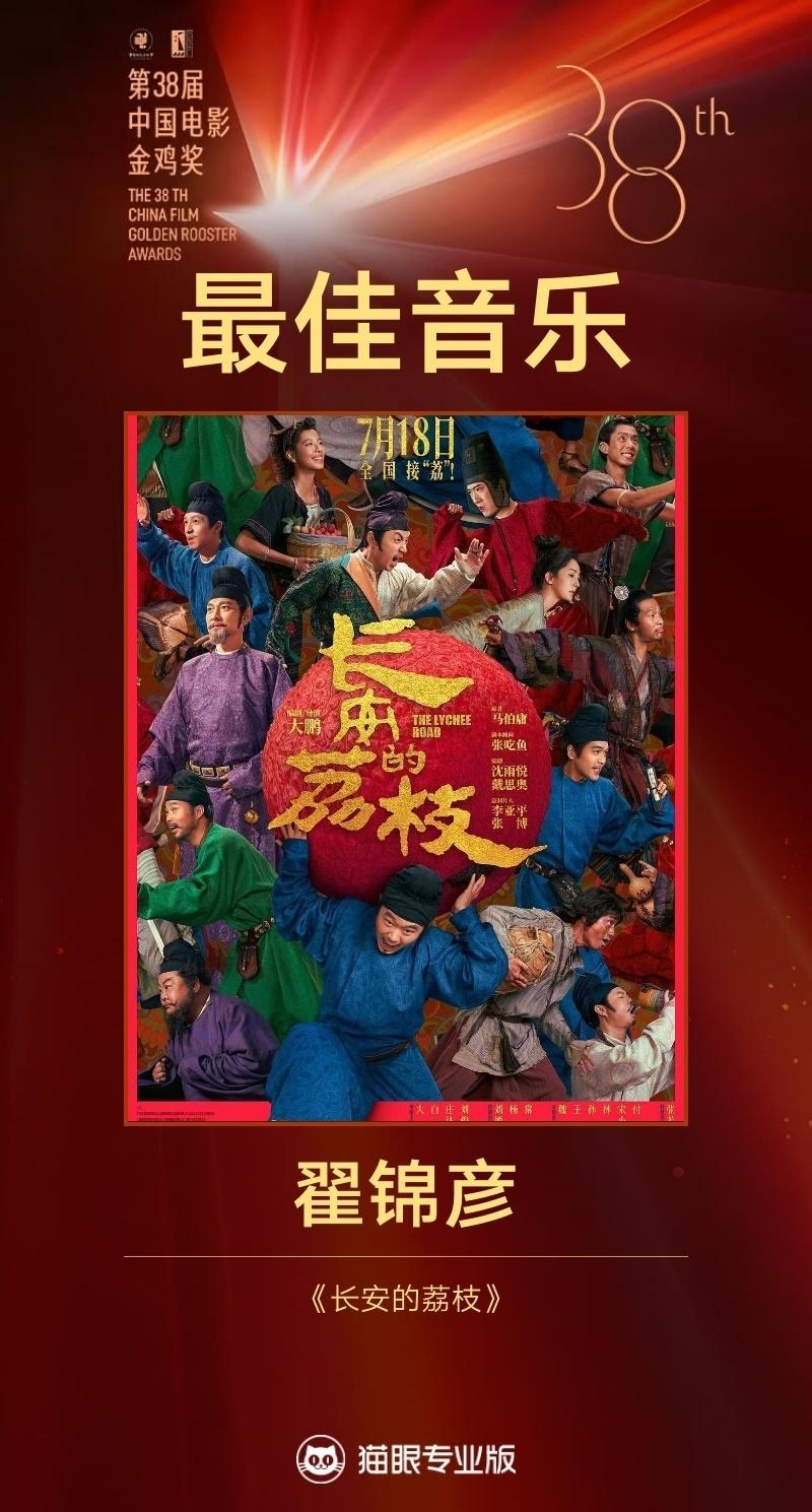 第38届中国电影金鸡奖最佳音乐奖:翟锦彦《长安的荔枝》