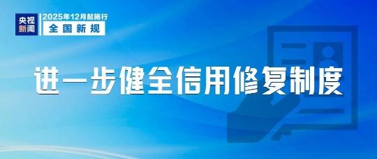《市场监督管理信用修复管理办法》12月25日起施行。办法进一步健全信用修复制度,鼓励当事人主动纠正违法失信行为,重塑良好信用。