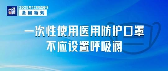 新修订的《医用防护口罩》强制性国家标准12月1日起实施。新国标规定,一次性使用医用防护口罩不应设置呼吸阀;应配有鼻夹或替代鼻夹的设计,佩戴时起到固定和密合作用。