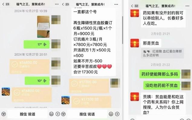 吉林务农的王先生近日向澎湃新闻反映,他患有骨髓增生异常综合征,2024年11月,他向介绍人王某转账3万余元,从位于“吉林大药房”(和顺街店)内部隔间“天基权易康之家”,拿到了两款宣称是国外具有“抗癌”“升血”功效的药品。