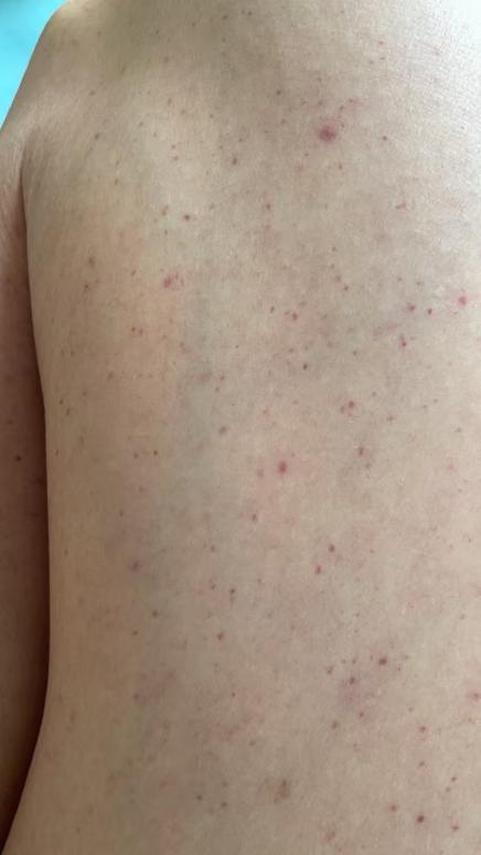 王先生称服用涉事药品两个月后,腿部出现血点。