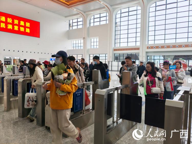 旅客有序进站。人民网记者 王勇 摄