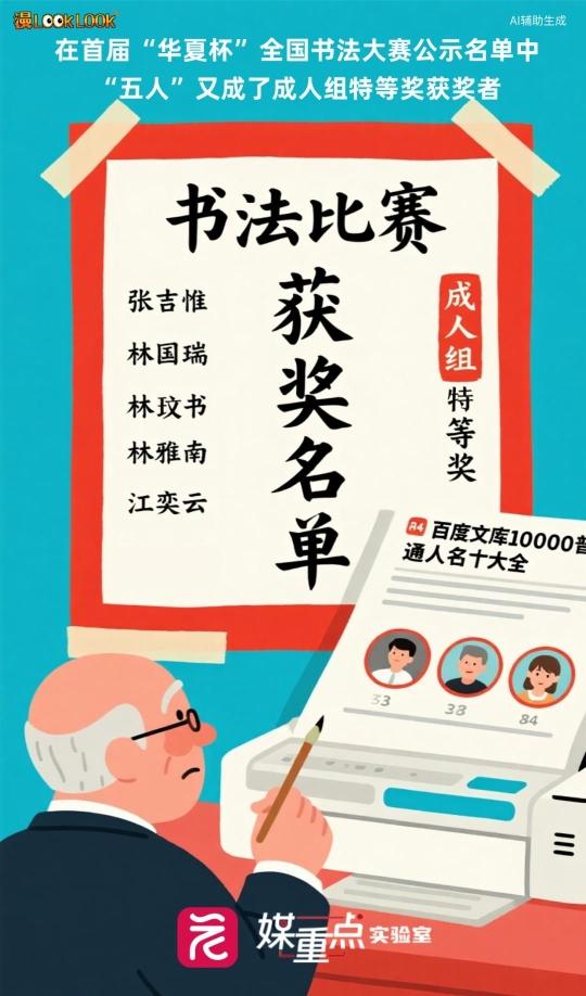 近两天,百度文库《10000中国普通人名大全》中“张吉惟、林国瑞、林玟书、林雅南、江奕云”五人的名字,被曝频繁出现在采购评审、比赛获奖名单、行政处罚公示等不同场景,引发舆论对公共事务造假的质疑,这五人也被称为“全网最忙五人组”。