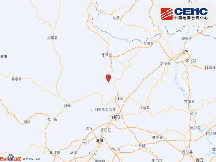 中国地震台网正式测定:12月17日12时24分在四川绵阳市北川县(北纬32.04度,东经104.56度)发生3.7级地震,震源深度11千米。