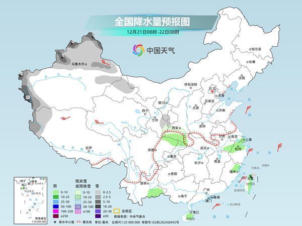 雨雪来去匆匆,明天中东部大部地区又将进入雨雪稀少模式。预计,新疆北部和南疆西部山区、西藏西北部、甘肃西北部和东南部、宁夏南部等地部分地区有小雪或雨夹雪,其中,新疆北部和南疆西部山区、西藏西北部等地部分地区有中到大雪,局地暴雪。陕西南部、湖北西部、四川东北部、重庆东北部、云南东南部、江南东北部、福建东部、海南岛、台湾岛东部等地部分地区有小到中雨,其中,台湾岛东北部局地有大雨。