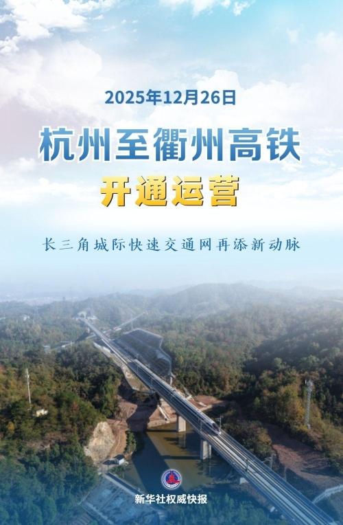 12月26日9时许,首趟始发列车C3132次从衢州西站开出,沿着新建杭州至衢州高速铁路驶向杭州方向,标志着杭衢高铁正式开通运营,长三角城际快速交通网再添新动脉。