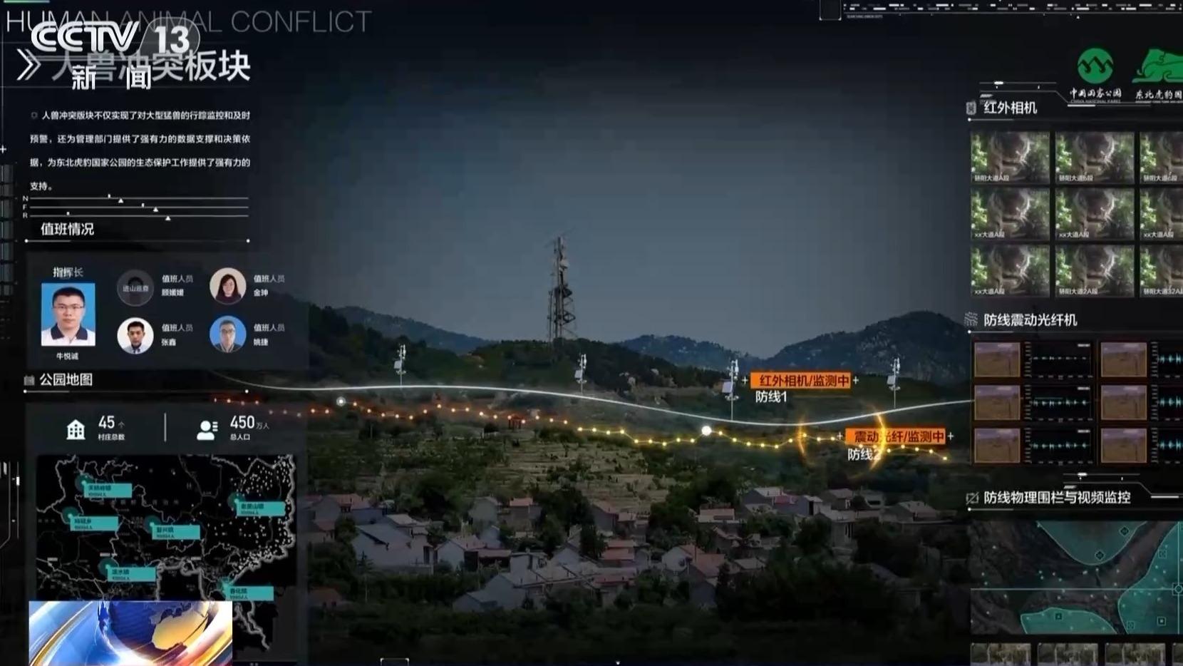 东北虎豹国家公园管理局综合业务处处长 陈晓才:为了应对人兽冲突,我们在虎豹公园重点核心区的重点村屯开始架设物理围栏,用最简单的方法把村庄四周用铁丝网围住,阻止大型猛兽和有蹄类动物侵入村庄。