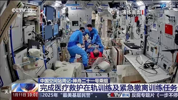 神舟二十一号航天员张陆、武飞、张洪章在轨工作已超70天。上周恰逢元旦假期,他们的“太空日程表”依旧忙碌而充实。他们在轨开展了遥操作交会对接在轨训练、医疗救护在轨训练和紧急撤离训练等多项在轨训练,有序推进了多领域科学实验。