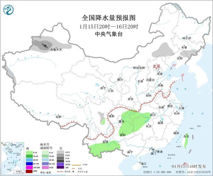 全国降水量预报图(1月15日20时-16日20时) 图片均来自中央气象台网站