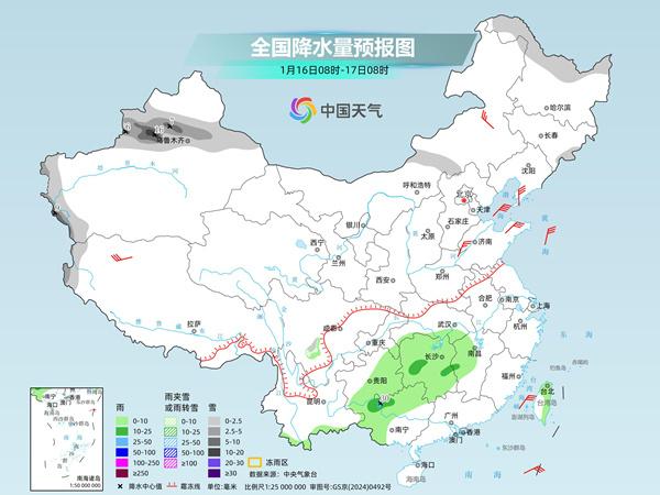 中央气象台预计,今天,新疆沿天山地区及南疆西部山区,黑龙江北部、吉林东部、西藏西部等地部分地区有小到中雪,其中,新疆沿天山西部地区和伊犁河谷等地部分地区有大到暴雪;江南中西部、贵州东部和南部、广西西部和北部、云南南部、台湾岛东部等地部分地区有小到中雨,广西西北部局地有大雨。