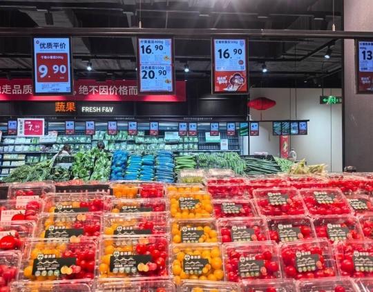 2026年1月15日,北京某小区楼下商超内出售的西红柿,两个10元。 新华社记者韩佳诺 摄