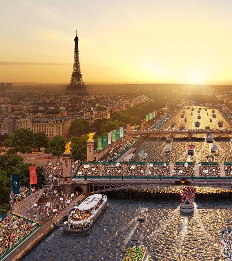 巴黎奥运会将于7月26日至8月11日举行。7月26日举行的开幕式将打破传统,首次在运动场之外举行。开幕式当晚,超过1万名运动员乘搭94艘船只参加在塞纳河上的巡游,他们将从奥斯特利茨桥出发,途经巴黎圣母院、卢浮宫、大皇宫等著名地标,终点为埃菲尔铁塔附近的耶拿桥,全程约为6公里。在统一抵达埃菲尔铁塔附近的夏乐宫之后,开幕式的余下部分将继续进行。