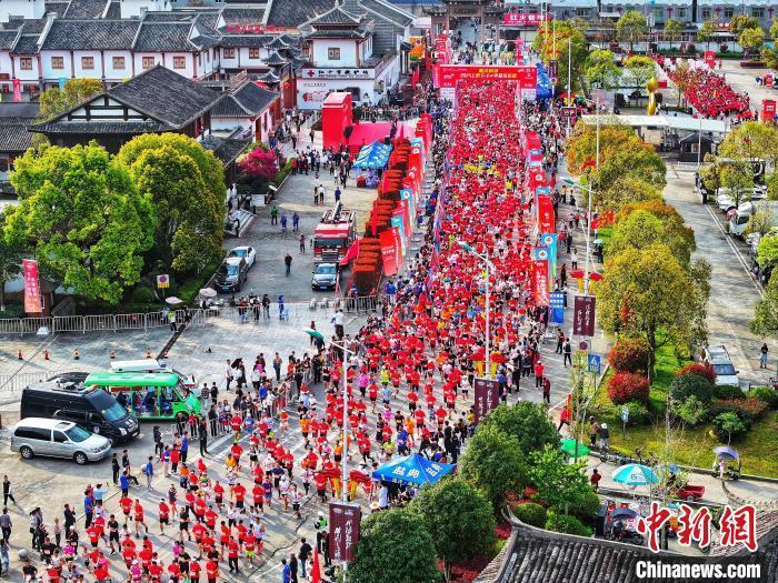 中新网福建上杭3月25日电 3月24日,春光旖旎,2024上杭“红古田”半程马拉松在福建上杭县古田镇开跑。来自全国各地的3000名马拉松竞赛选手参加了比赛,另有2000名选手参加了健康跑活动。