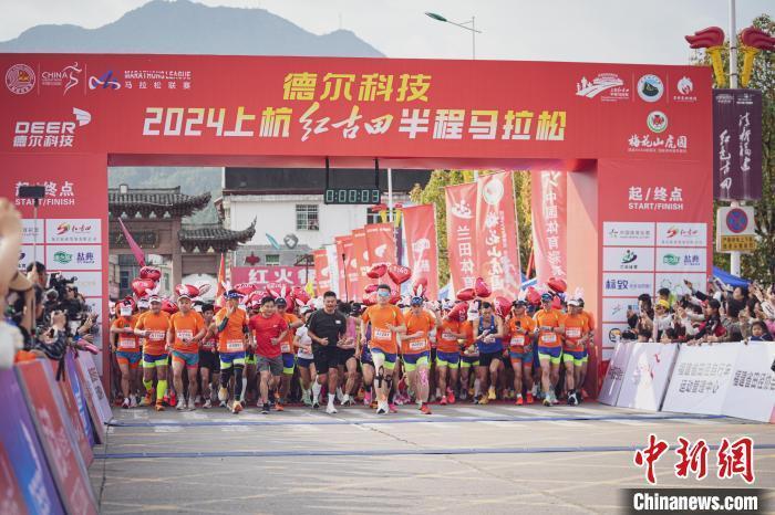 2024上杭“红古田”半程马拉松在福建上杭古田镇开跑。郭亦斌摄