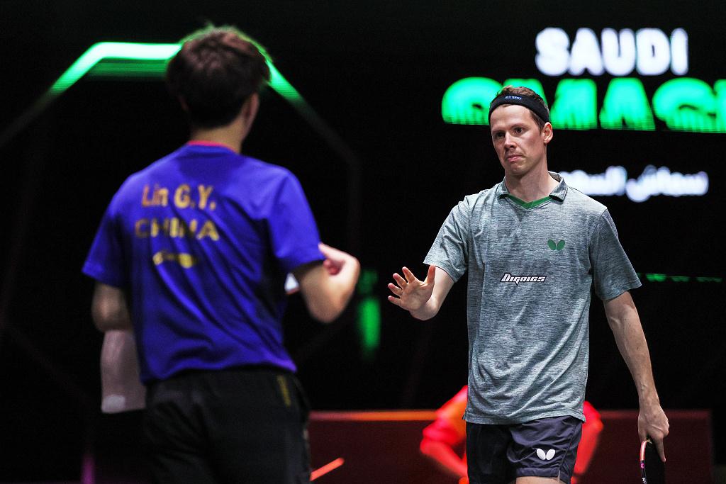 当地时间2024年5月6日,沙特吉达,WTT2024沙特大满贯赛男单1/16决赛,林高远1-3不敌约纳坦·格罗特。