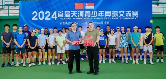 6月6日下午,新加坡国家网球队球员及教练一行人来到天体网球场,与天河区网球队的青少年展开交流比赛,期间双方合影留念,互换纪念品,互送祝福。