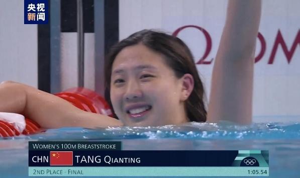 在游泳女子100米蛙泳决赛中,唐钱婷夺得银牌。