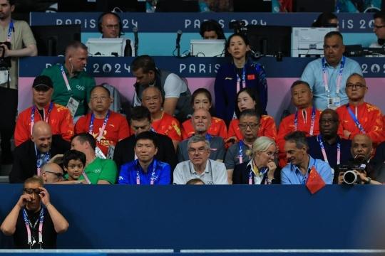 今晚的决赛现场迎来大批VIP,包括国际奥委会主席巴赫、国际乒联主席索林、国家体育总局局长高志丹、中国体坛名将李宁、邓亚萍、刘诗雯、郭晶晶等。观众席不仅全场爆满,而是绝大部分为中国球迷,全场高呼中国队加油,让“莎头组合”宛如主场作战。王楚钦/孙颖莎在这场混双决赛中展示强大的实力,以11比6、7比11、11比8、11比5、7比11和11比8获胜。