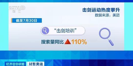 数据显示,今年以来(截至7月30日),“击剑培训”搜索量同比增长110%,上海、北京、深圳、广州、成都的消费者搜索击剑热度最高,25岁到35岁之间的消费者占比近五成。同时,击剑体验课在平台热销,击剑运动相关团购订单量同比增长翻一倍。