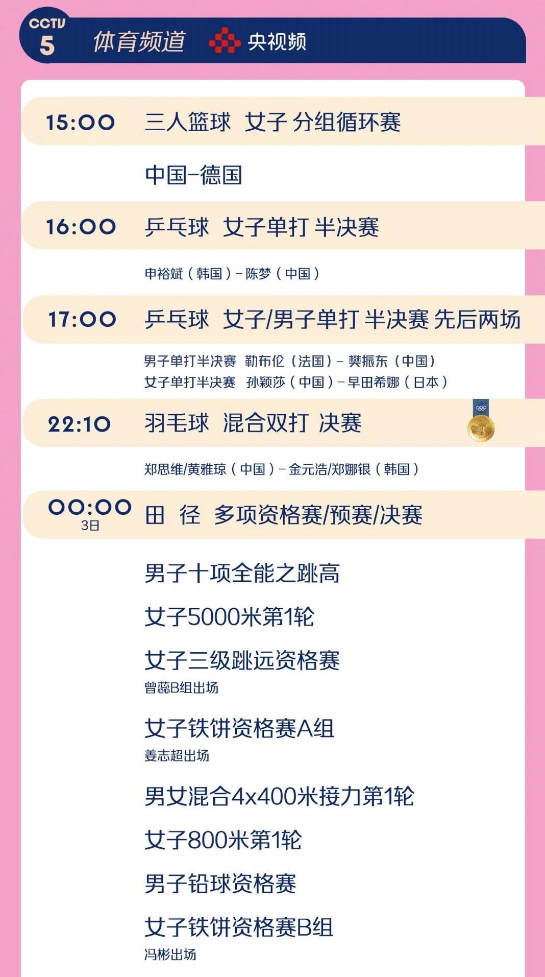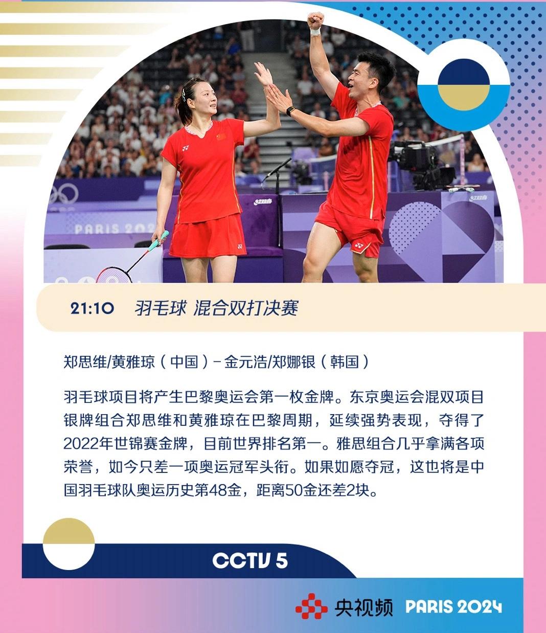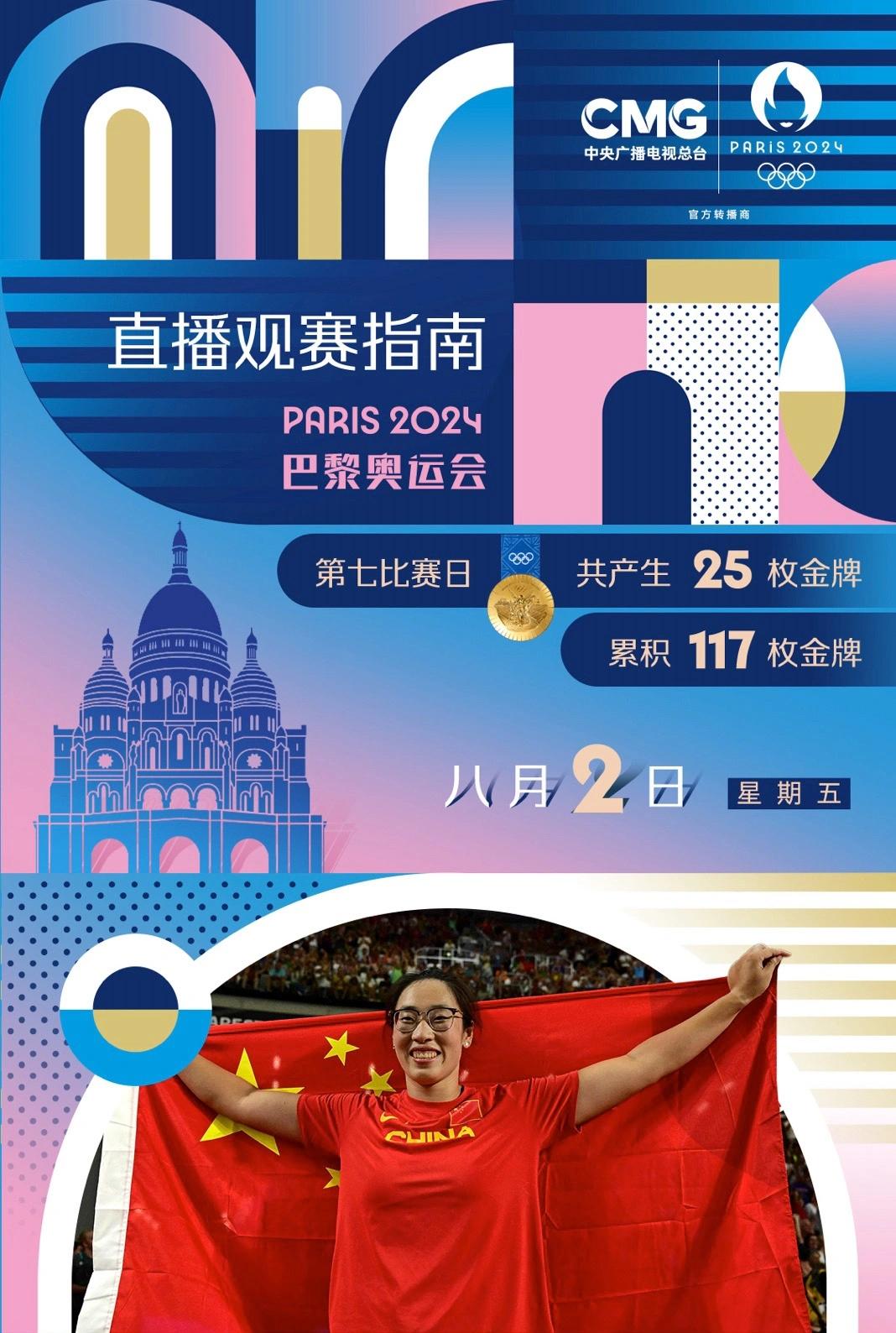 巴黎奥运会第七个比赛日将产生25枚金牌。中国体育代表团将在跳水、网球等项目上冲击金牌。