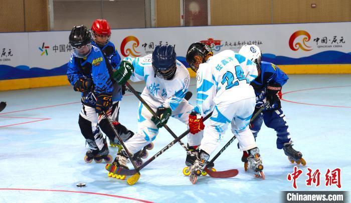 中新社丽水8月2日电 手持曲棍,传球、控球……8月1日至2日,在浙江丽水庆元的体育馆内,两岸青少年轮滑球运动员展开激烈角逐。其间,一个大陆球员突然摔倒,四五个台湾球员立马上前,借用曲棍将他搀扶起来……