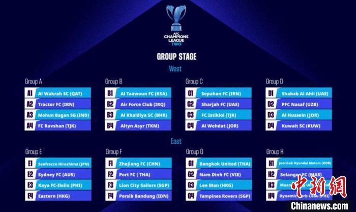 中新网杭州8月16日电 16日,2024—2025赛季亚足联冠军联赛2级联赛(下称亚冠二级联赛)小组赛抽签结果揭晓。据亚洲足球联合会(下称亚足联)官网消息,位于东亚区第一档的中超“独苗”浙江队与泰港(泰国)、狮城水手(新加坡)、万隆泊西布(印度尼西亚)同处F组。
