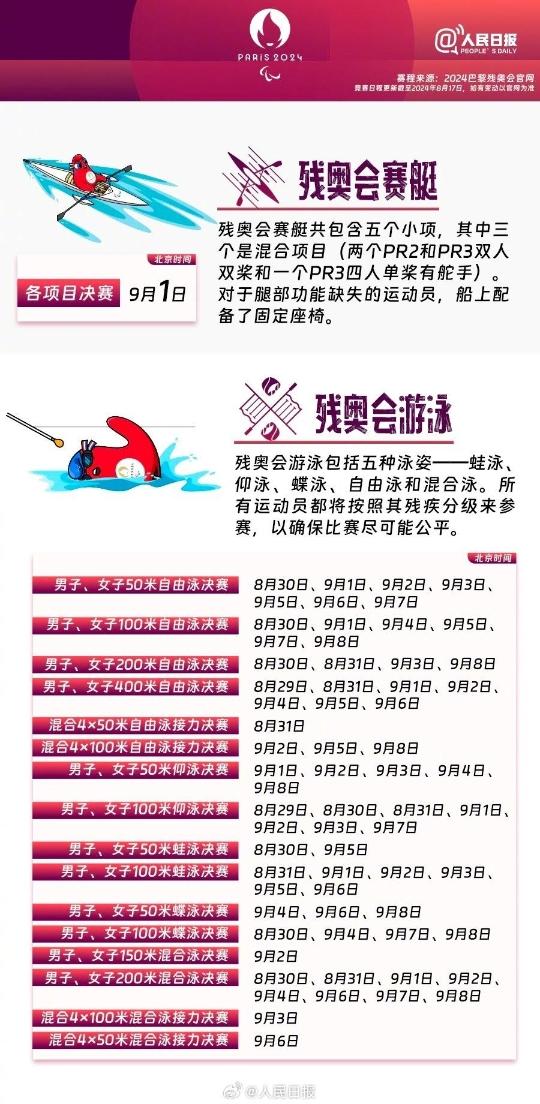 巴黎残奥会将于8月28日至9月8日举行,共设22个大项、549个小项,284名中国运动员出征。超越自我、挑战极限,残奥运动员们也值得你的关注和掌声。巴黎残奥会还有10天举行,一起期待,为中国代表团加油!