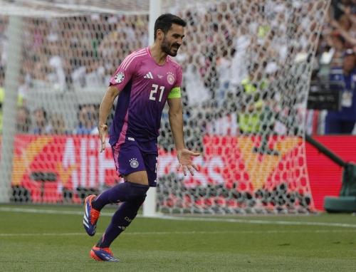 6月19日,德国队球员京多安进球后庆祝。新华社发(菲利普·鲁伊兹摄)