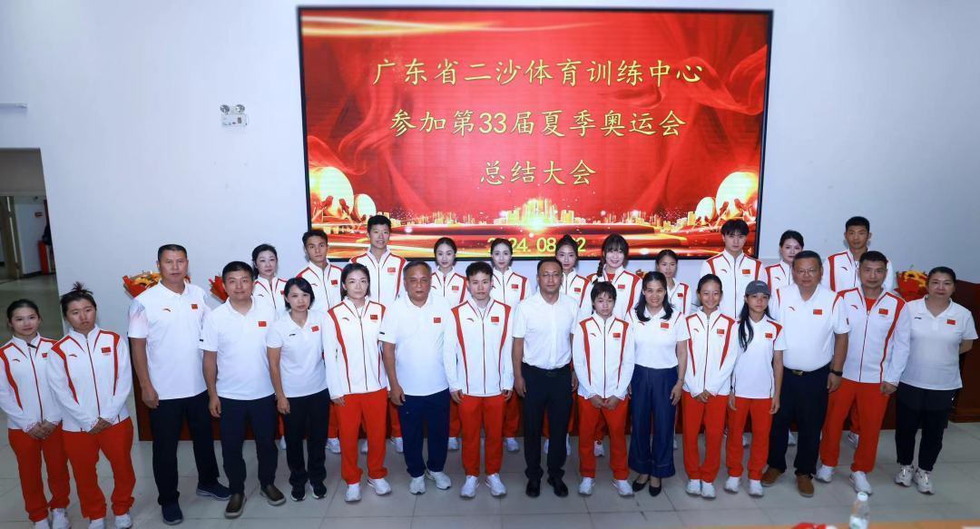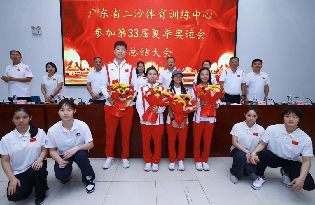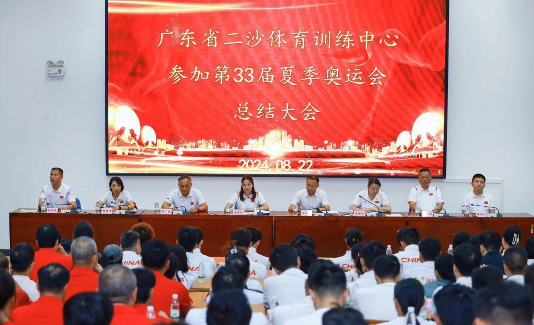 今天上午,广东省二沙体育训练中心举行第33届夏季奥运会总结表彰大会。二沙中心参加第33届夏季奥运会的运动员、教练员、工作人员等出席,田径、游泳、跳水、羽毛球、花样游泳、体操、篮球、滑板队的小运动员给他们送花,广东省体育局副局长朱红伟、二沙中心党委书记冼东妹等领导参加活动。