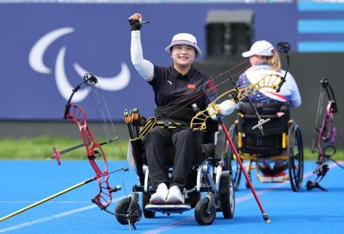 在能远眺埃菲尔铁塔的露天场馆中,五星红旗冉冉升起,全场观众为这名沉着美丽的中国女弓箭手欢呼。陈敏仪端坐在轮椅上,眸中闪烁着泪光。