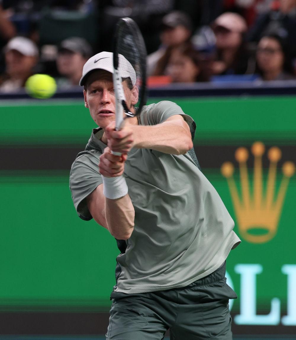 10月12日,辛纳在比赛中回球。新华社记者 王翔 摄