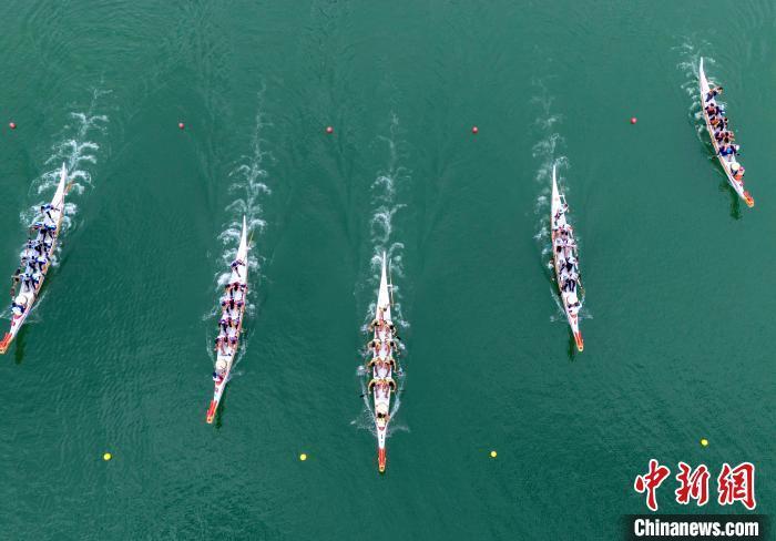 当天,开幕式上举行了传统的龙头点睛、龙舟巡游仪式。随后,比赛正式开始。龙舟健儿配合着激昂而有节奏的鼓点,奋力划桨,龙舟如离弦之箭向前飞驰。鼓声、加油声响彻于高峡平湖中。