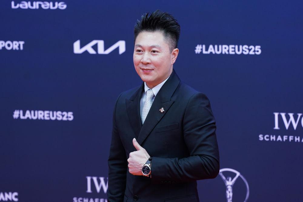4月21日,劳伦斯学院成员、中国前体操运动员李小鹏出席红毯仪式。新华社记者 彭子洋 摄