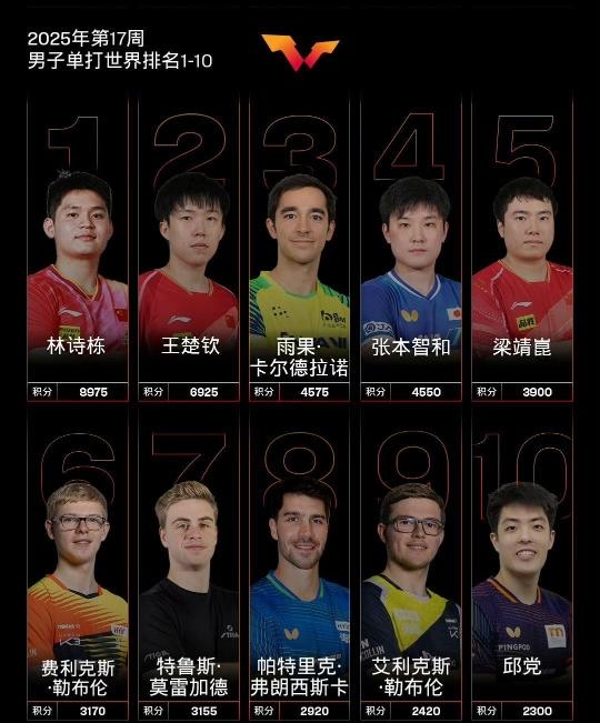 北京时间4月22日,国际乒联公布了最新一期世界排名。